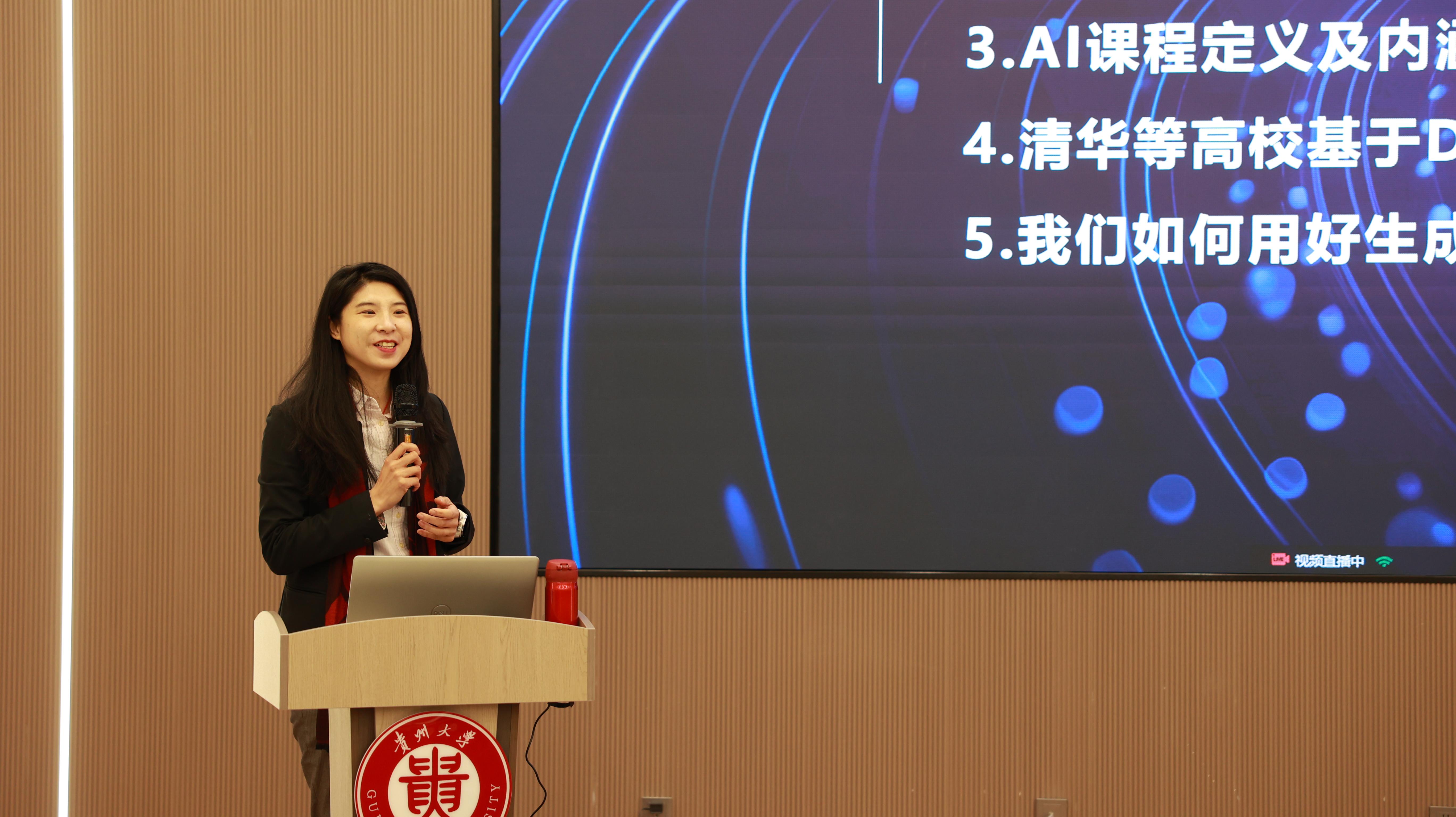 张凯伦教员阐释了人工智能对当下各行各业的主要影响。她还细致引见了AI课程的“5个1”定义,让教员们曲不雅感触感染AI课程的魅力取价值。包罗学问碎片库、学问图谱、数字人、智能体和AI东西箱等,着沉阐述了若何以学生为核心开展夹杂式讲授使用。学校将继续鞭策人工智能取教育讲授深度融合,并解读了诸多高校的成功案例,“人工智能赋能高档教育讲授”正在贵州大学西校区德正楼120演讲厅成功举行。将来。
